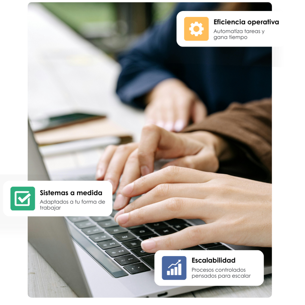 Soluciones digitales adaptadas a cómo trabaja tu empresa, que conectan departamentos y eliminan tareas repetitivas.